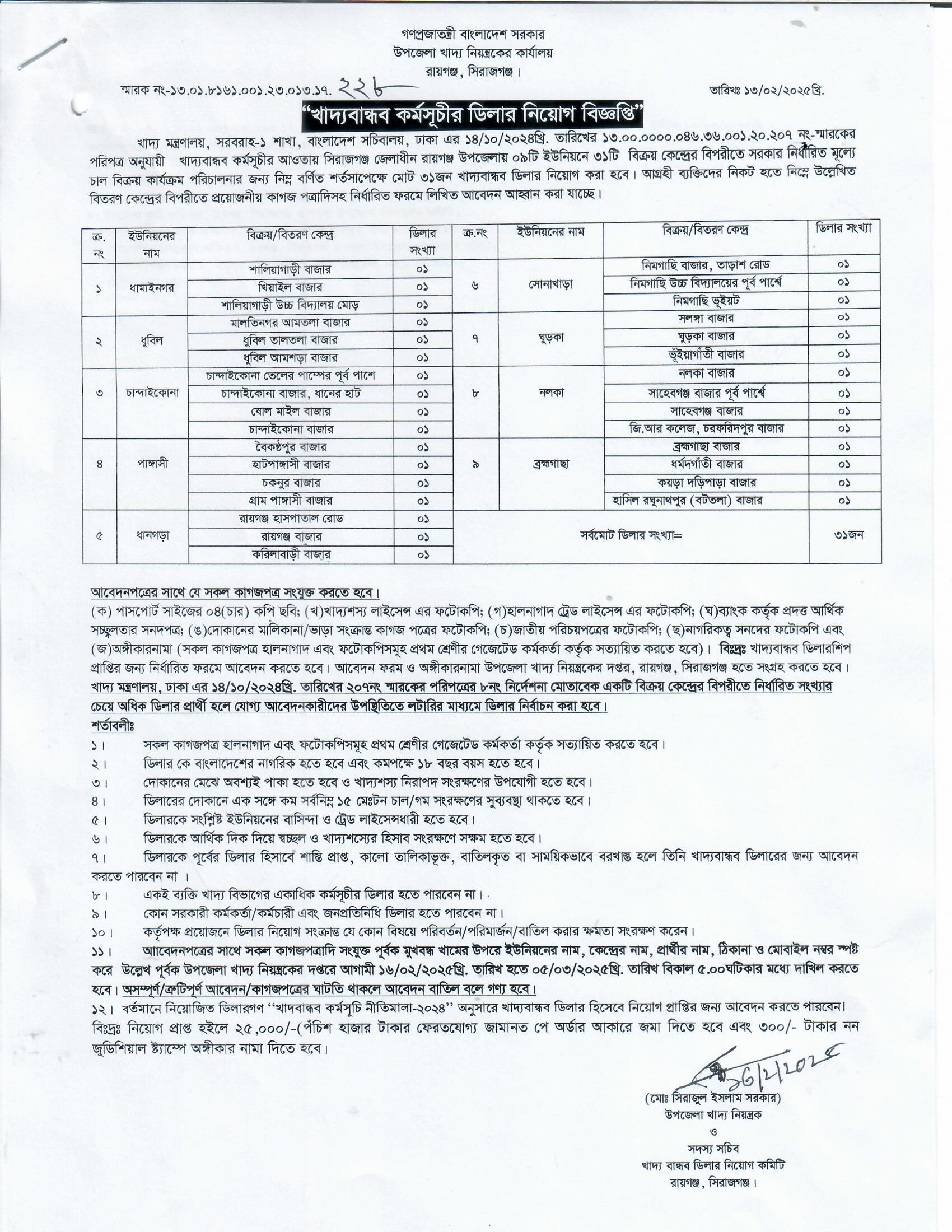 খাদ্যবান্ধব কর্ম সূচির এবং ওমএস ডিলার নিয়োগ বিজ্ঞপ্তি